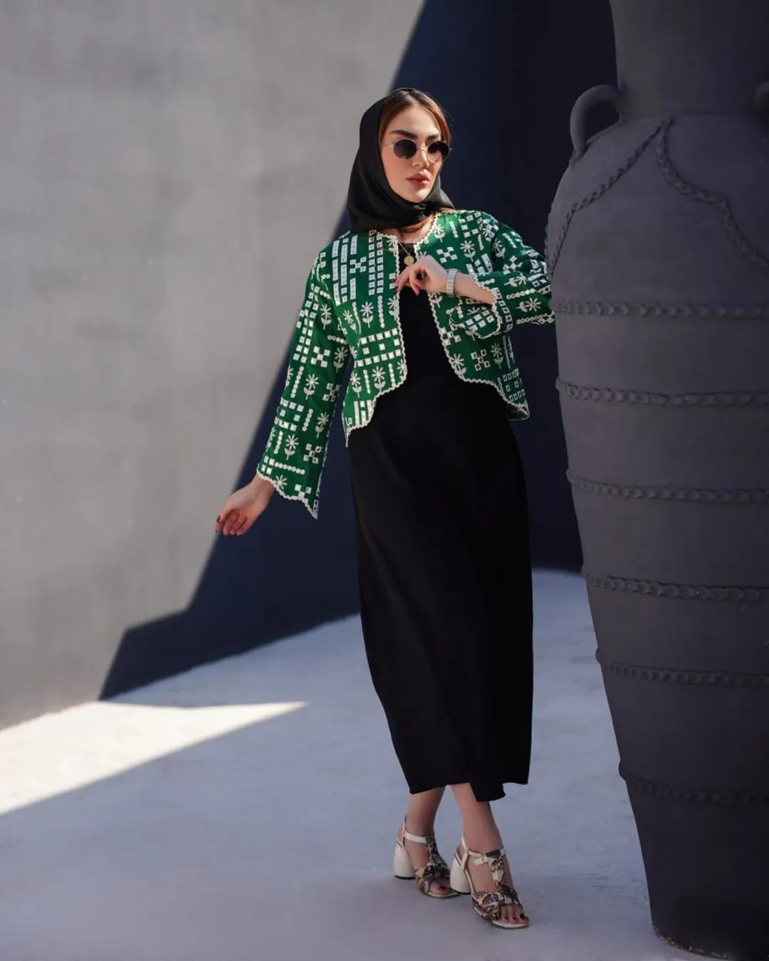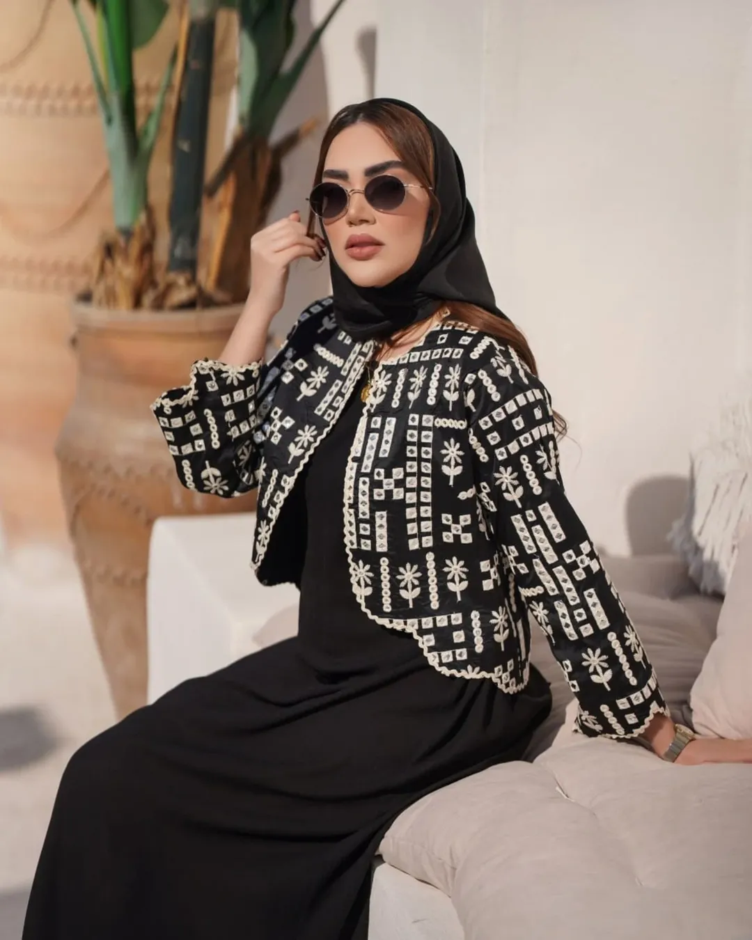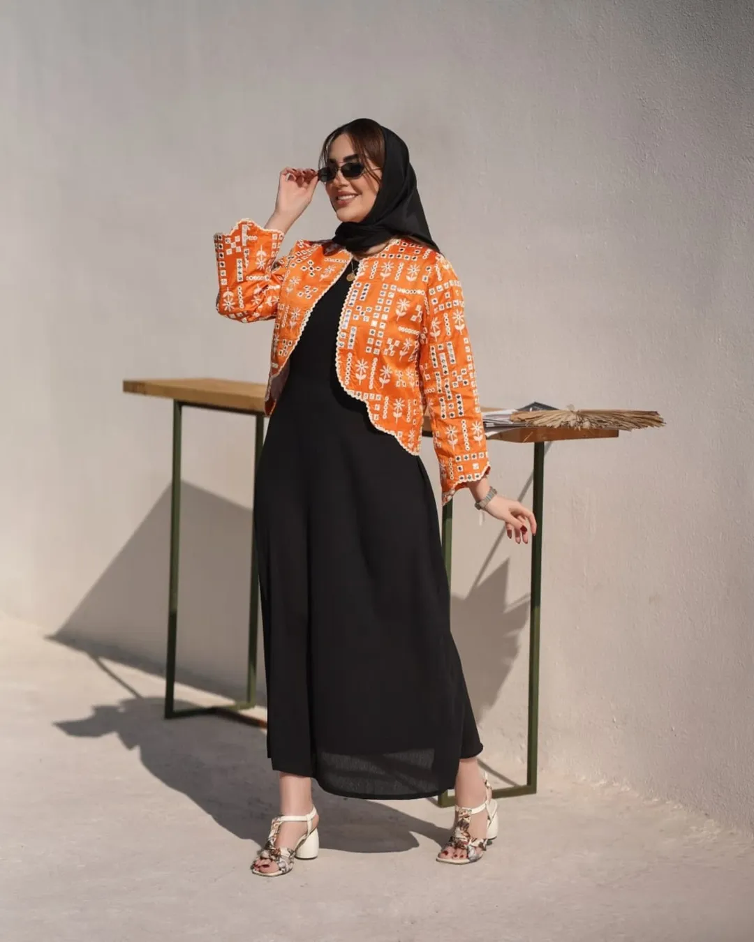 ست کت و سارافون با سایزبندی ۲ (۳۶ تا ۴۶) و در شش رنگ مختلف.
